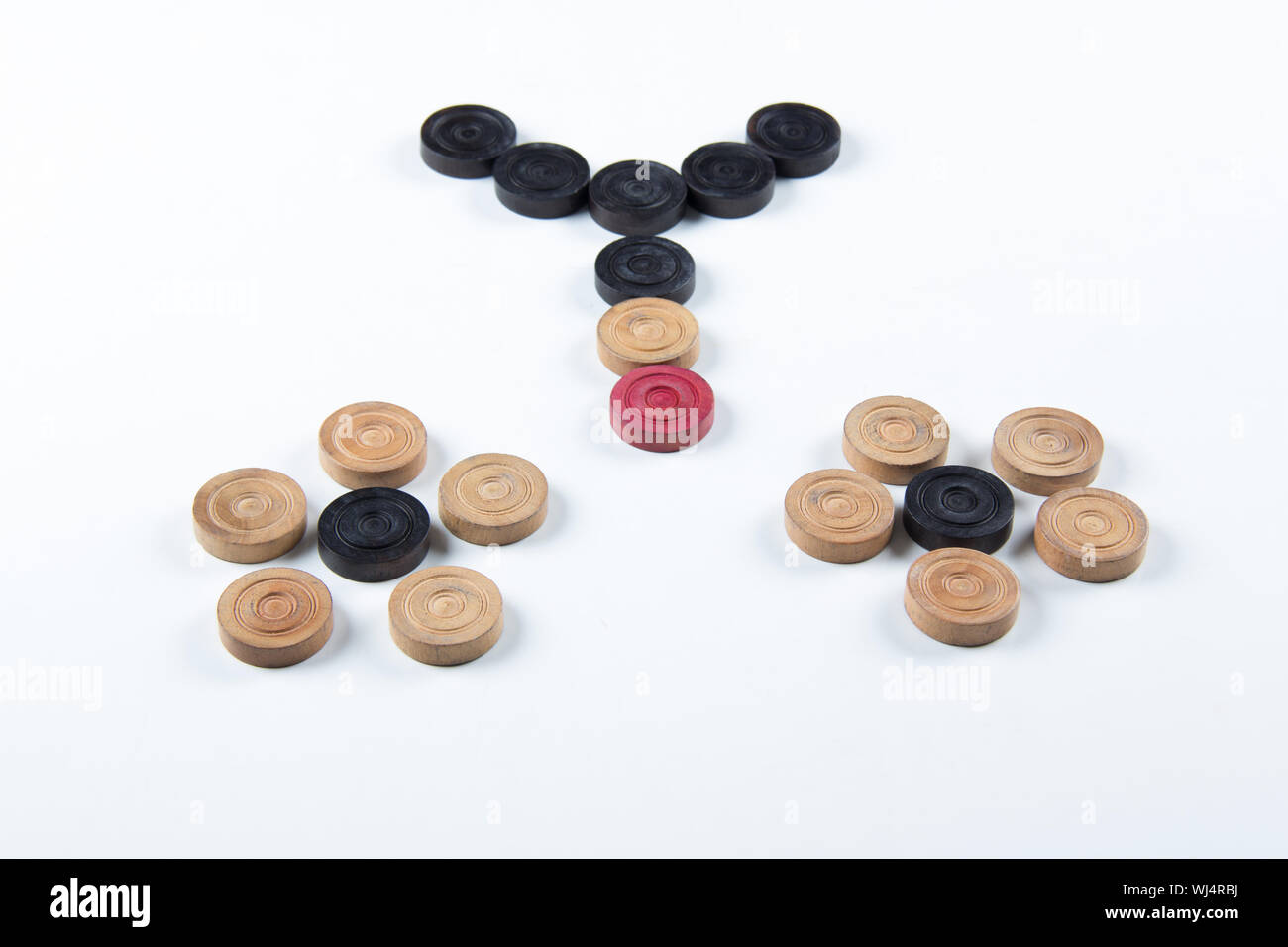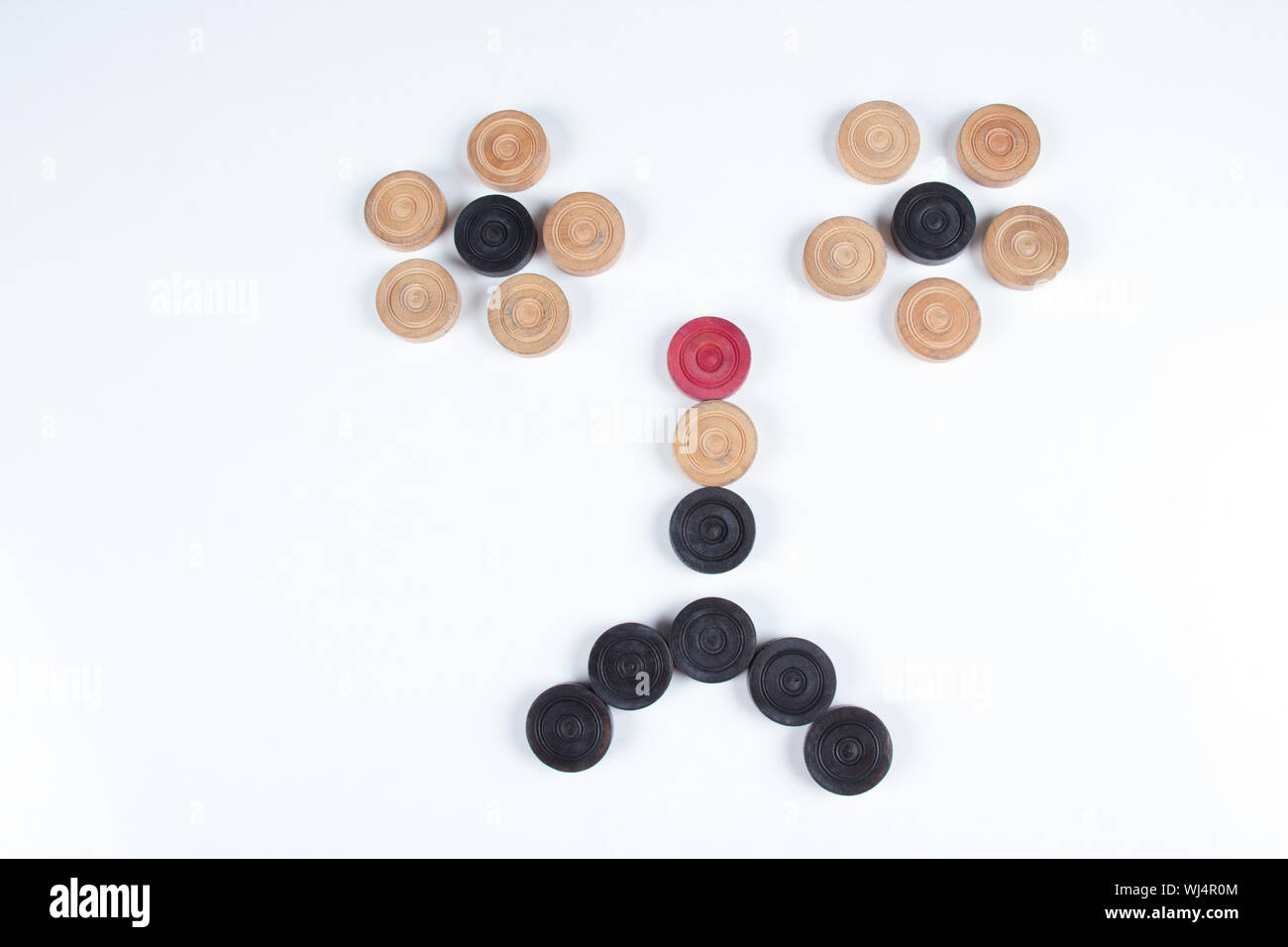 Close Up Of Carrom Pieces With Representing Sad Face Stock Photo