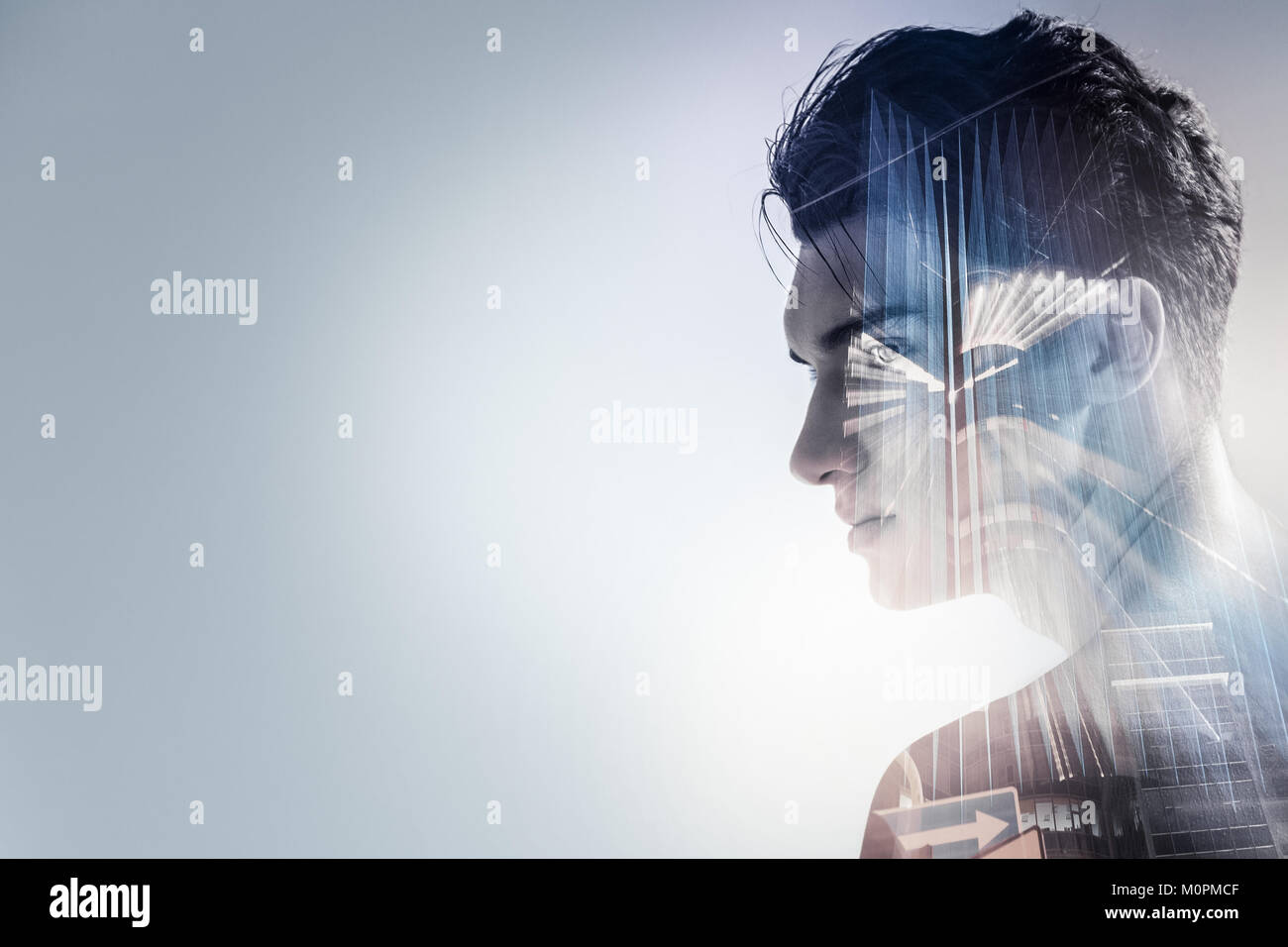 Critical Creative Guy Brightening With Ideas Stock Photo